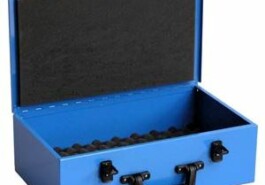 Die Bohrerkoffer von Syncro System bestehen aus hochfestem Stahl und haben innen am Deckel eine flache, und am Boden eine genoppte Schaumstoffeinlage. Dieses Material dient zum sicheren Transport und schützt Elektrowerkzeug wie Bohrer und Sägen, die einen robusten und funktionellen Behälter benötigen, vor Beschädigungen.