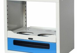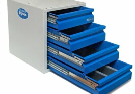 Die modulare Syncro System Schubladenblöcke sind in hochfestem Stahlblech hergestellt. Alle Metallschubladen sind mit Schienen mit Kugelführung (Tragkraft bis zum 100 Kg), Alutrennblechen und Antirutschgummimatten vorgesehen. Verschiedene Masse verfügbar. Alle Schubladen schliessen mit doppelter, automatischer Festellvorrichtung: das heist, dass beim Schiessen der Schublade diese automatisch verriegelt.