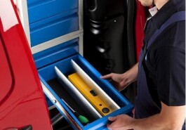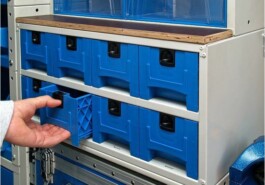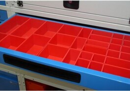 Die Kippboxen kommen mit Alutrennblechen und können einfach herausgenommen und in dem Arbeitsplatz getragen werden.